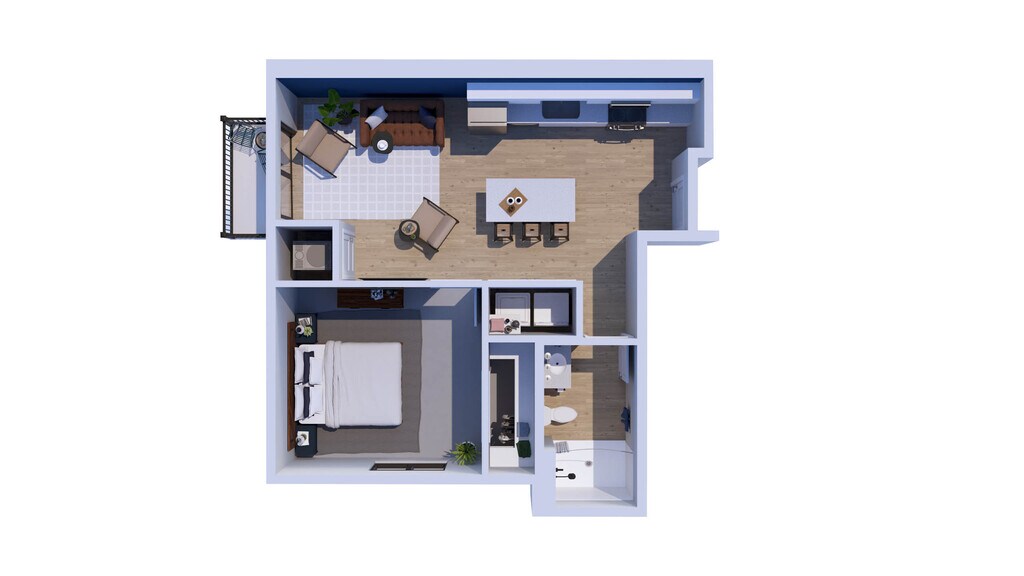 Relaxed and community-oriented, The Sandbar brings modern living into a cozy 582-square-foot layout. This one-bedroom apartment offers an efficient design with open flow between the kitchen, living room, and dining space. Perfect for singles or couples, The Sandbar offers a modern one-bedroom layout with stylish finishes and a relaxed flow inspired by Minnesota's natural beauty.