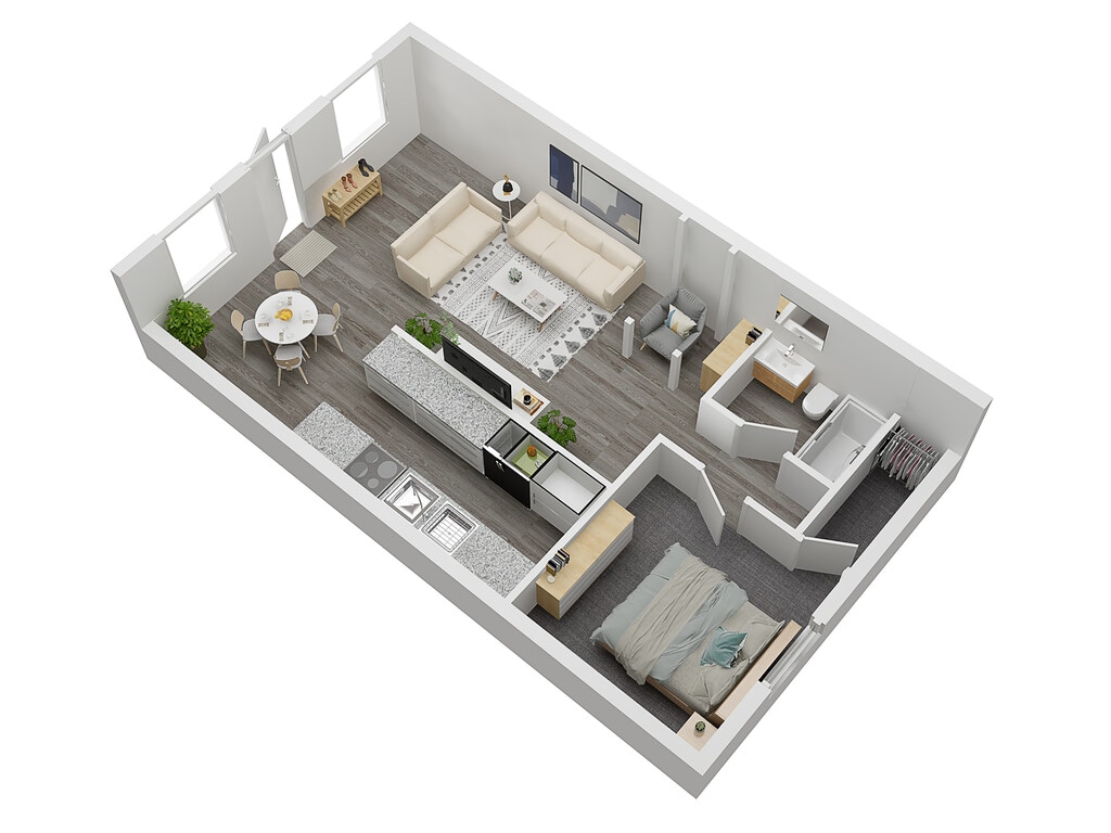 1 Bed, 1 Bath, 720 sq ftModel Gallery
