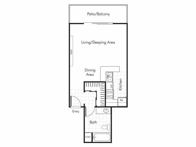 Studio, 1 Bath, 538 sq ftAvailable NowLargest StudioThis is the largest Studio at this PropertyModel Gallery
