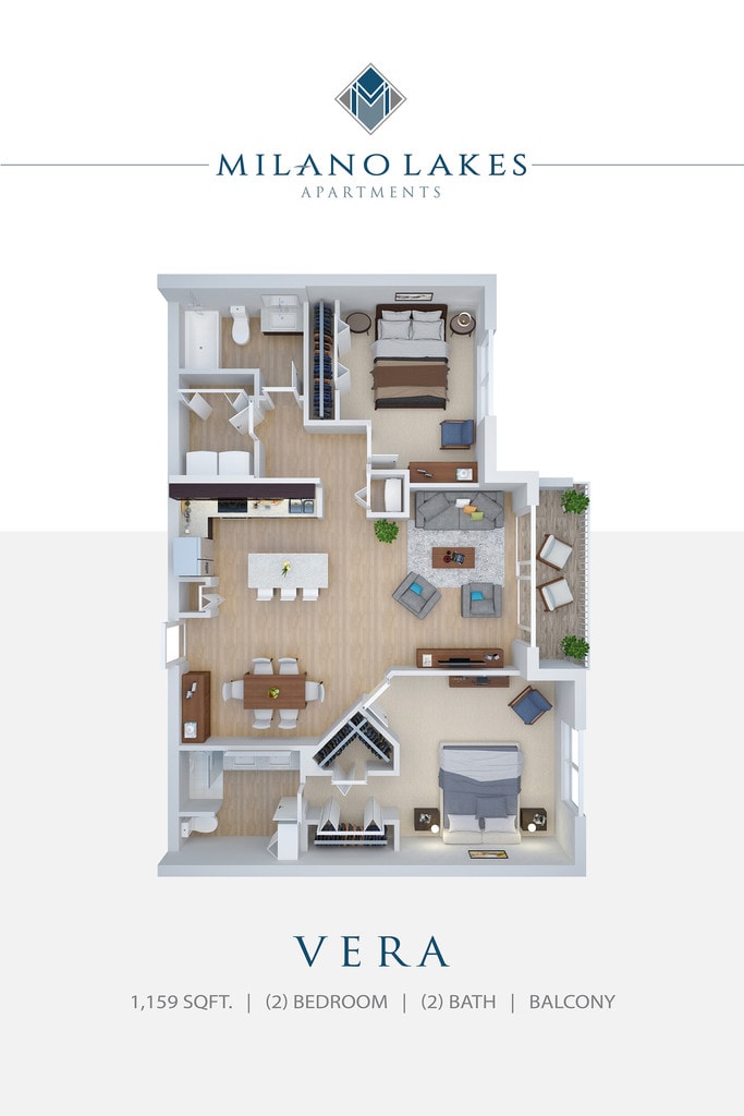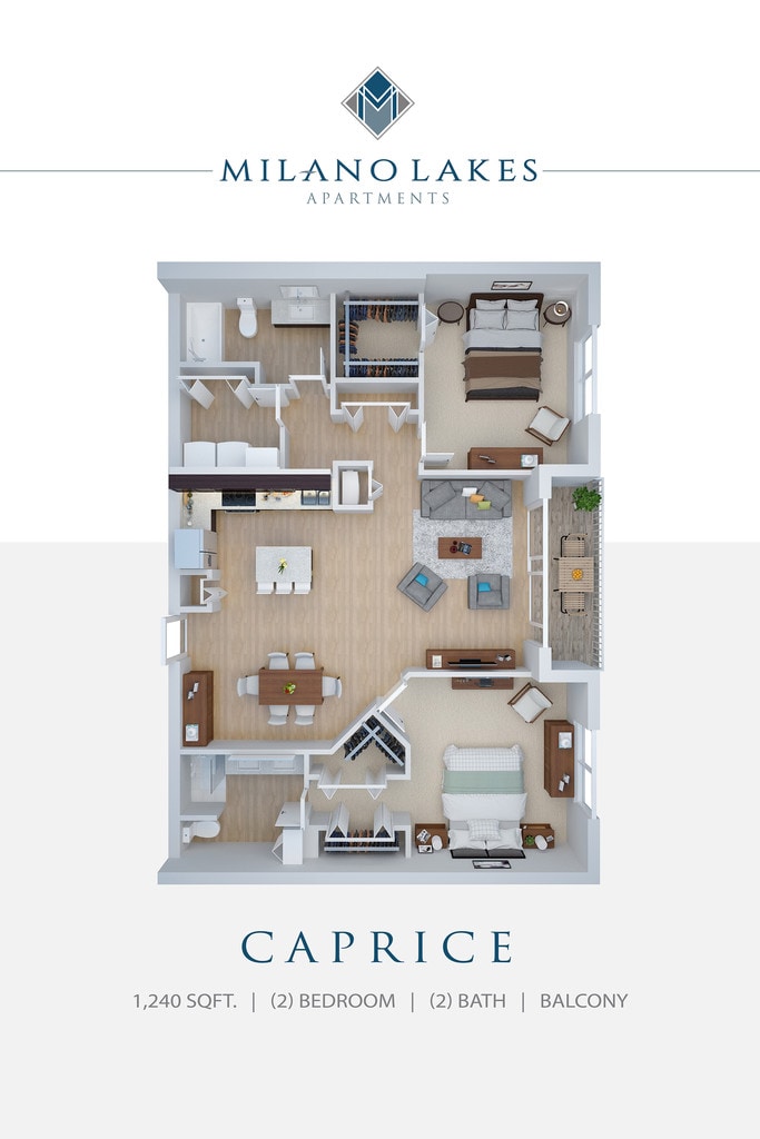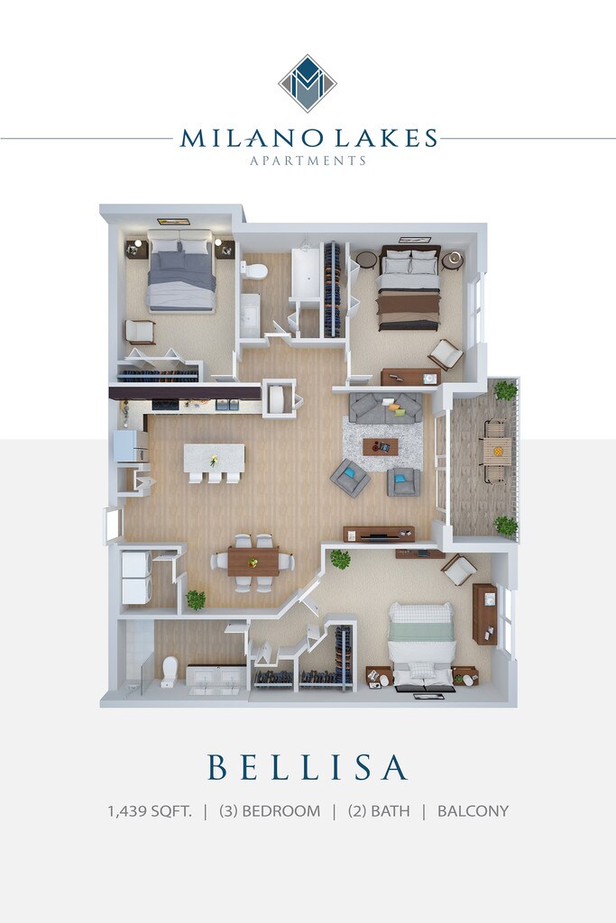 1 Bedroom to 3 Bedroom Apartments at Milano Lakes currently range from $1,693 to $2,360