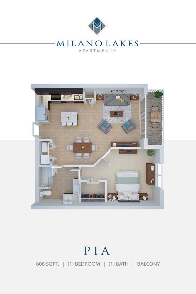 Apartment Model: PiaFrom $1,6931 Bedroom, 1 Bath, 808 sq ftAvailable Now![]()