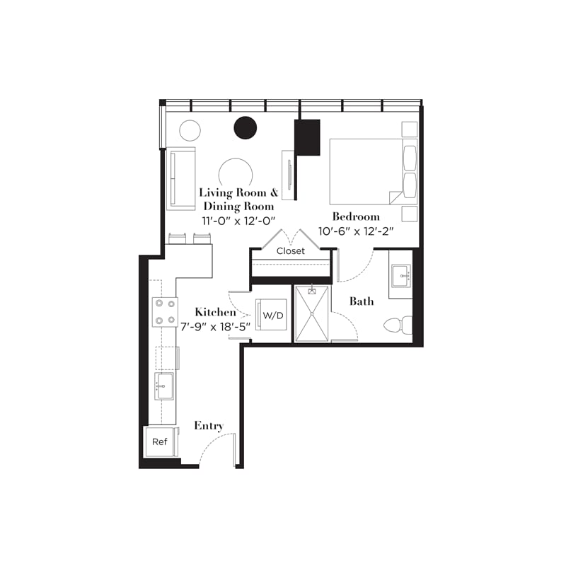 Studio, 1 Bath, 584-585 sq ftLargest StudioThis is the largest Studio at this PropertyModel Gallery
