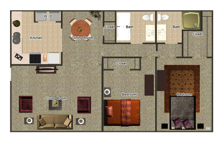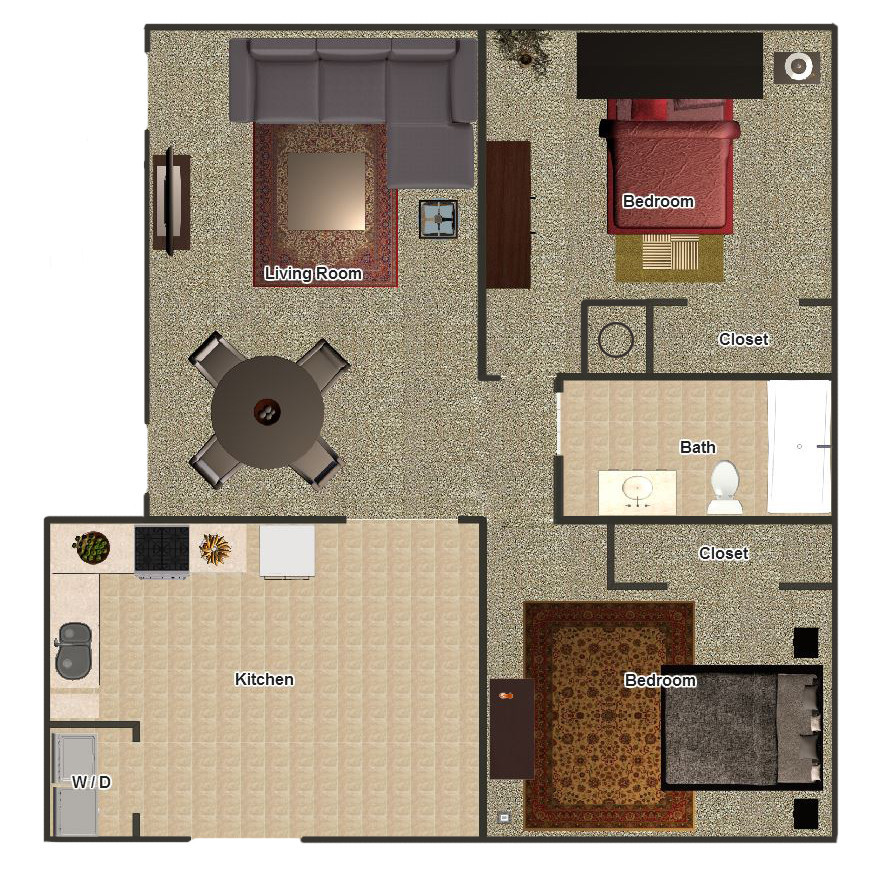 2 Beds, 2 Baths, 960 sq ftAvailable NowModel Gallery