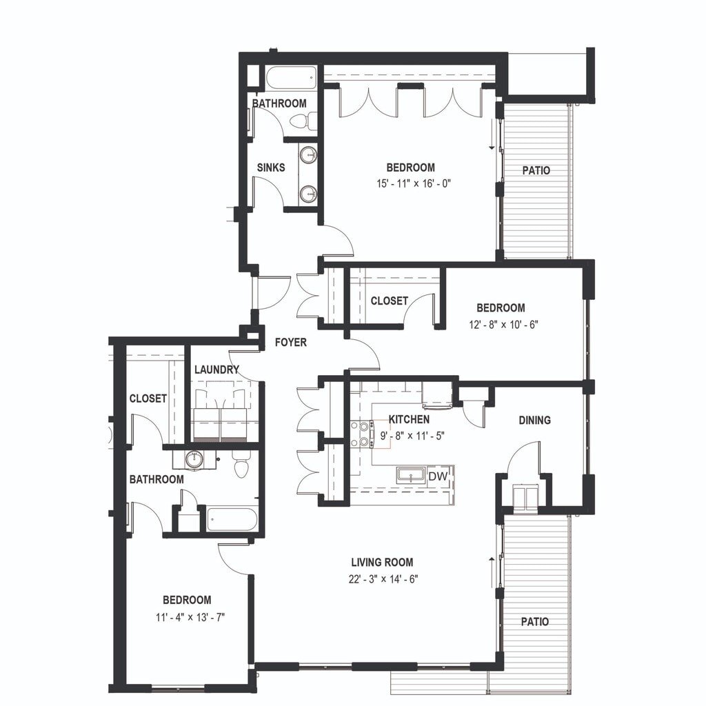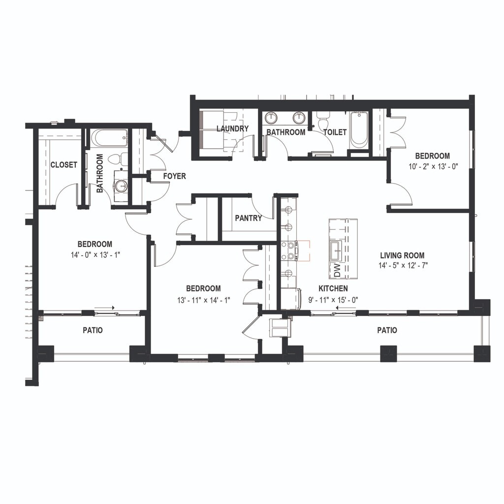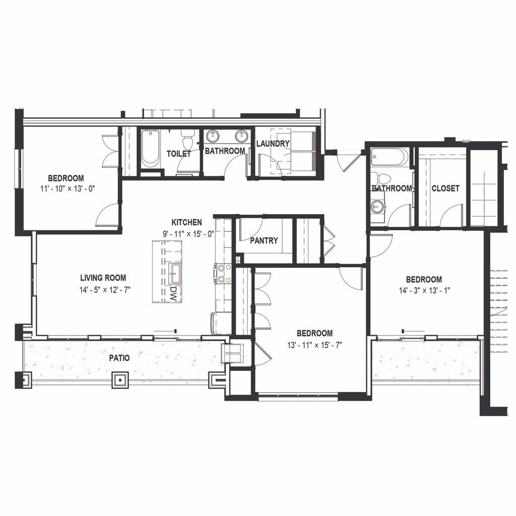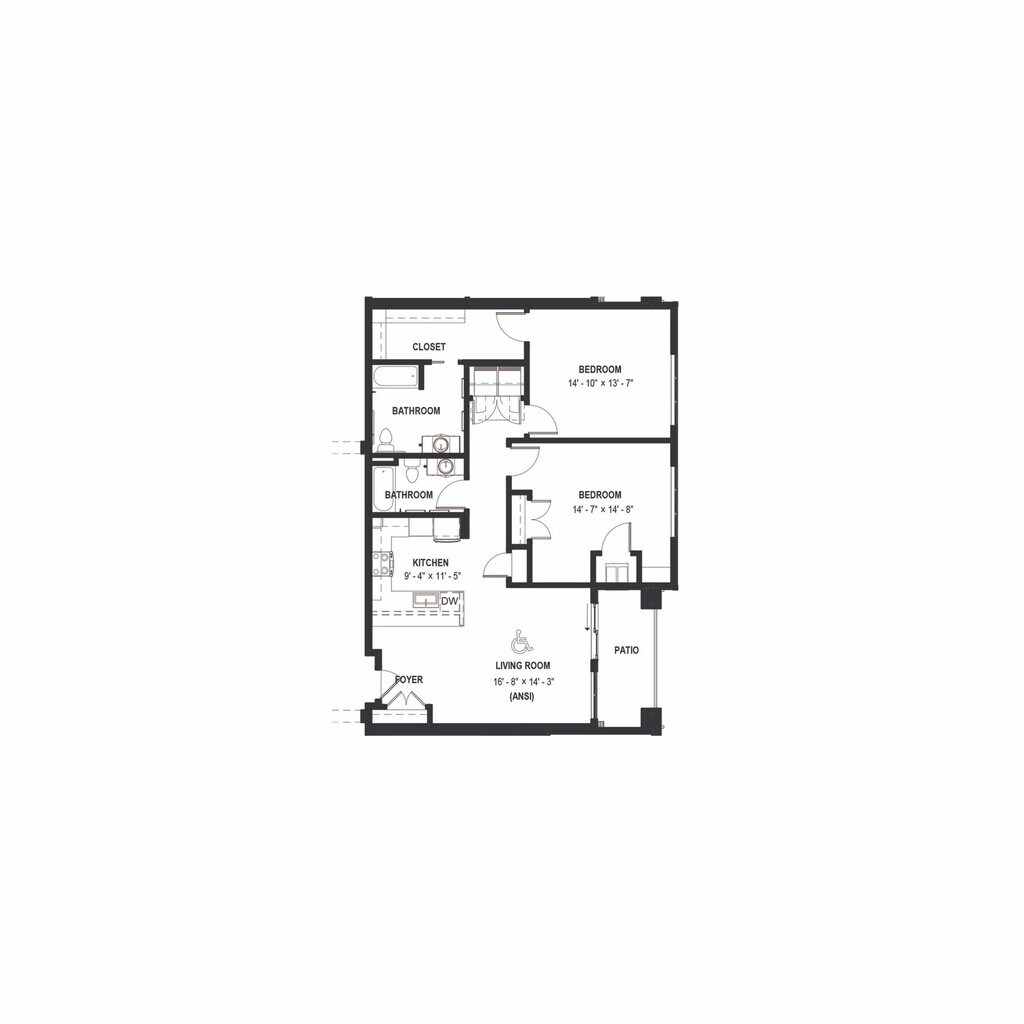 One Bedroom w/Den - Floorplan 3 2 Bedrooms