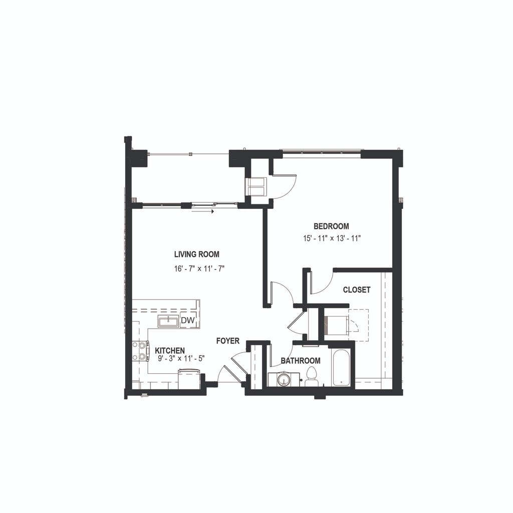 One Bedroom - Floorplan 10 Apartment Unit: A-405Apartment Model: One Bedroom$1,7601 Bedroom, 1 Bath, 755 sq ftAvailable Now![]()
