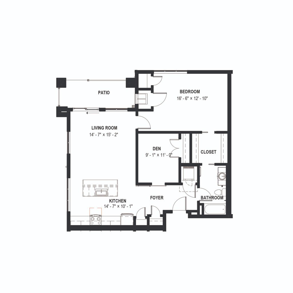 Unit: B-110 - Floorplan 1 One Bedroom w/Den