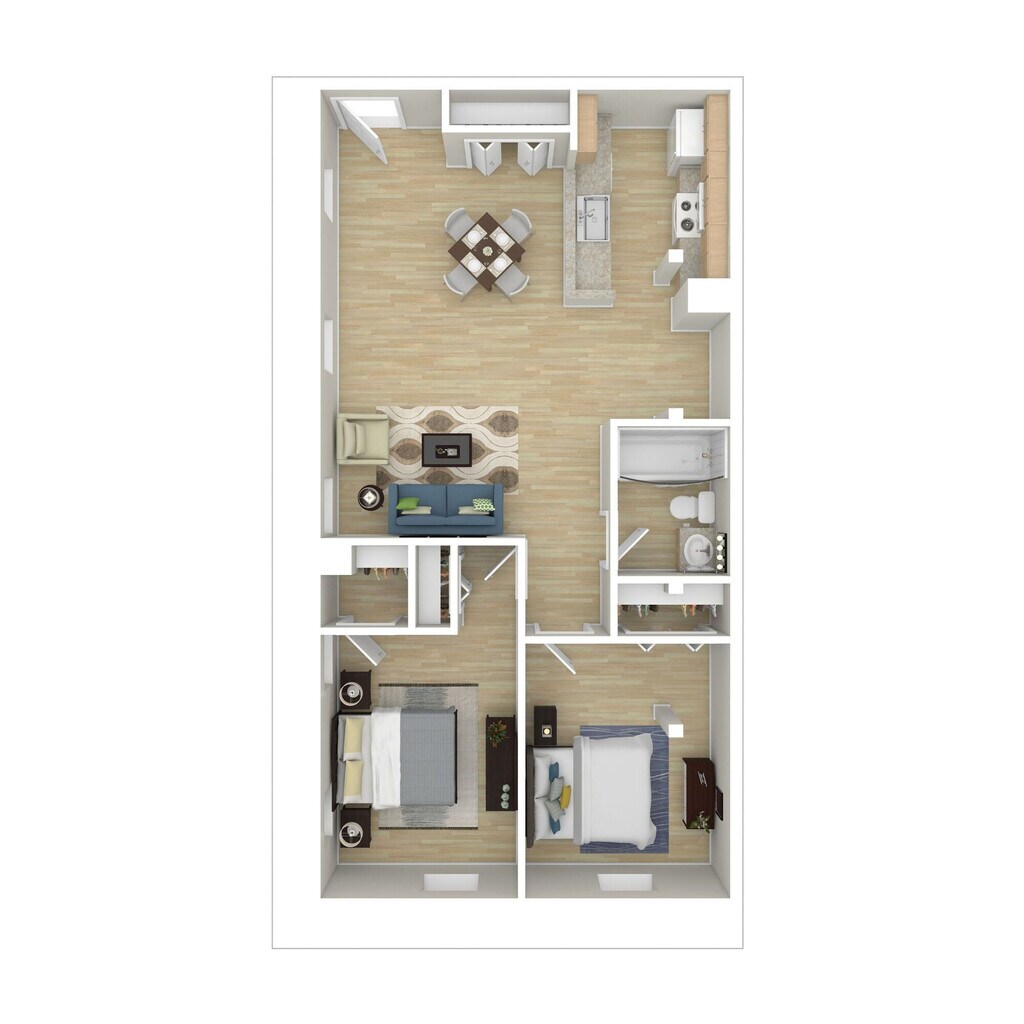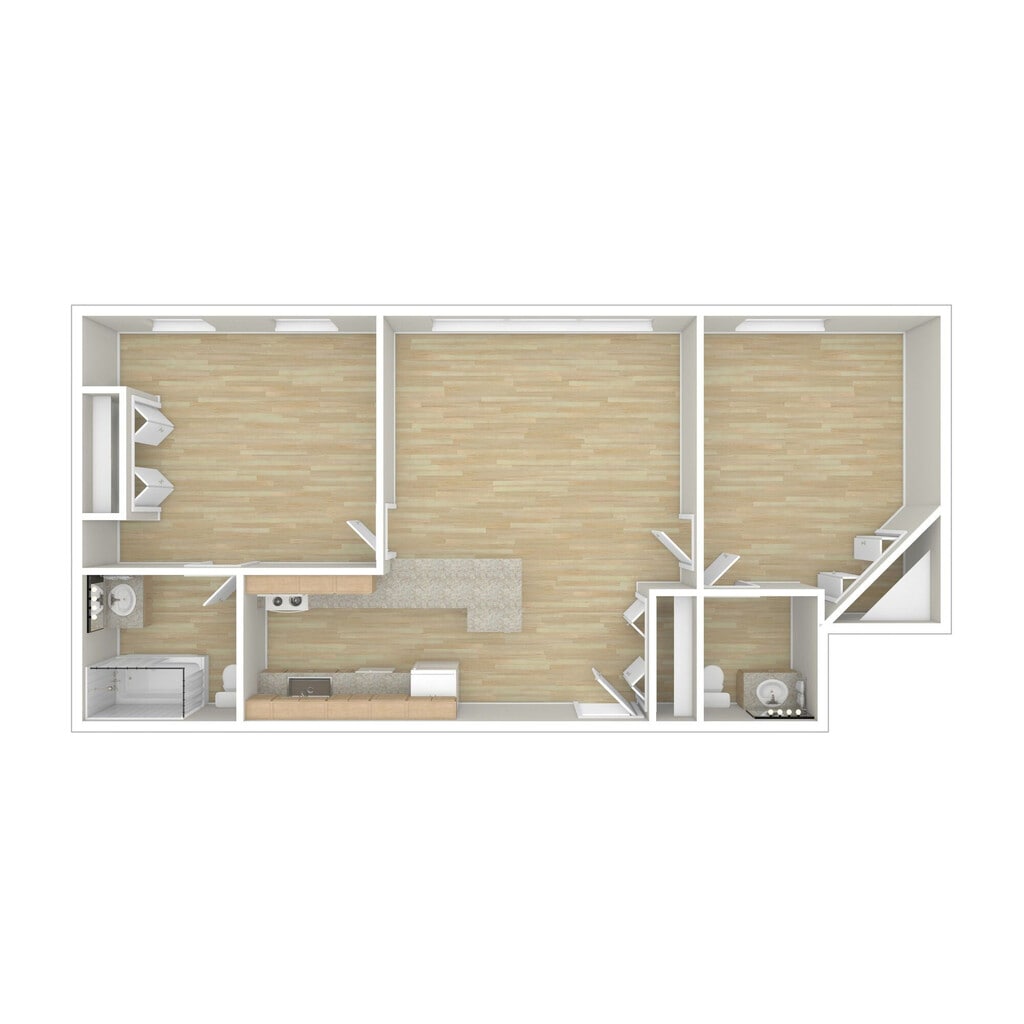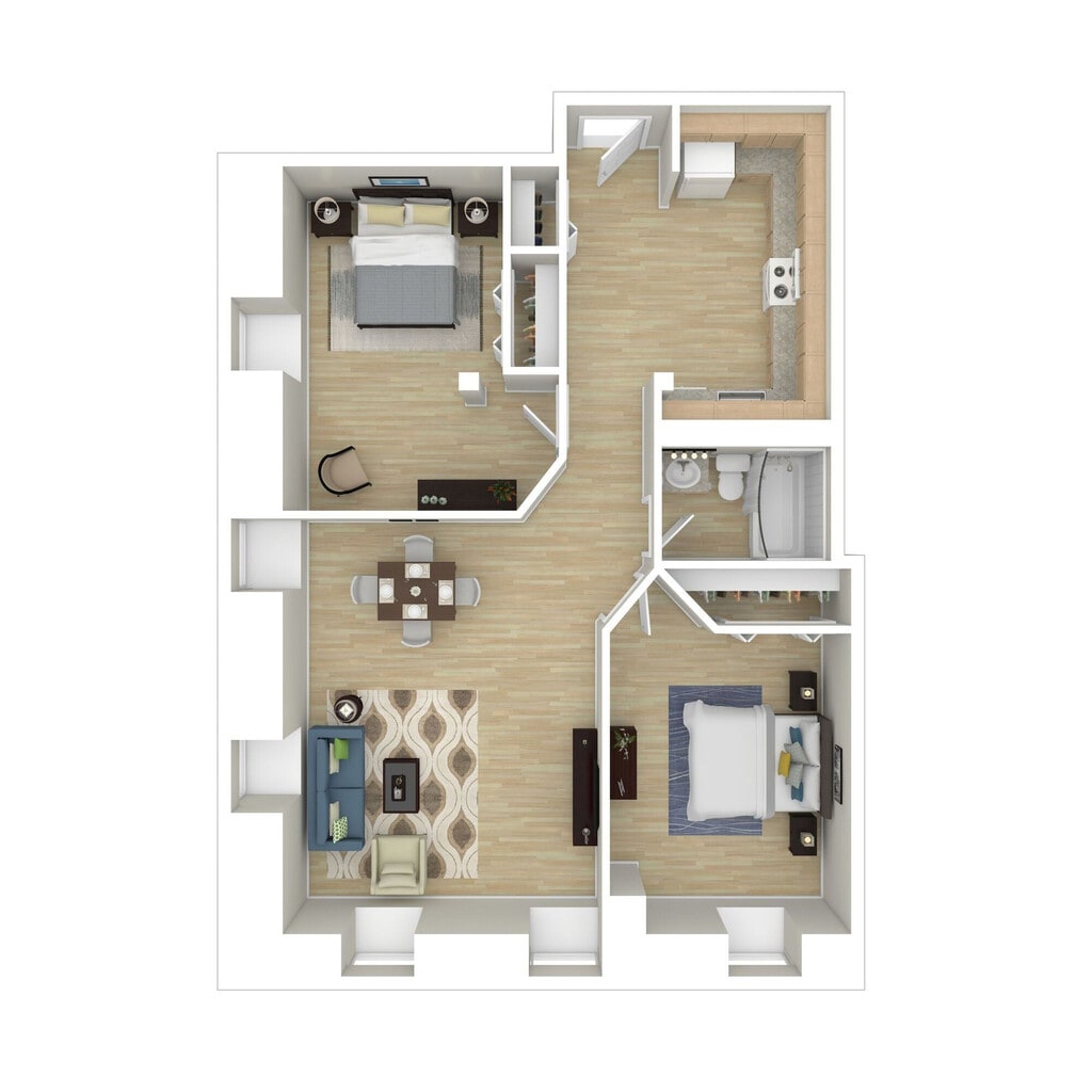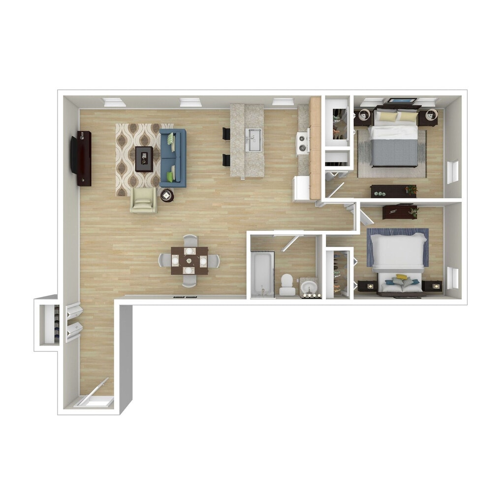 One Bedroom Deluxe - Floorplan 3 2 Bedrooms