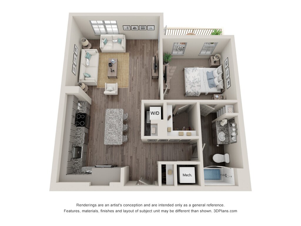 1 Bed, 1 Bath, 799 sq ftModel Gallery