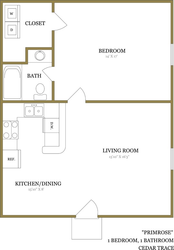 1 Bedroom 1 Bath Renovated - Floorplan 2 ![]()
