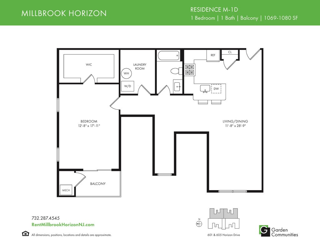 1 Bed, 1 Bath, 1069-1080 sq ftLargest 1 BedroomThis is the largest 1 Bedroom at this PropertyModel Gallery