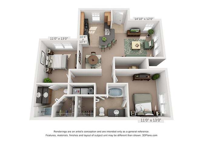 2 Beds, 2 Baths, 1025 sq ftAvailable NowModel Gallery