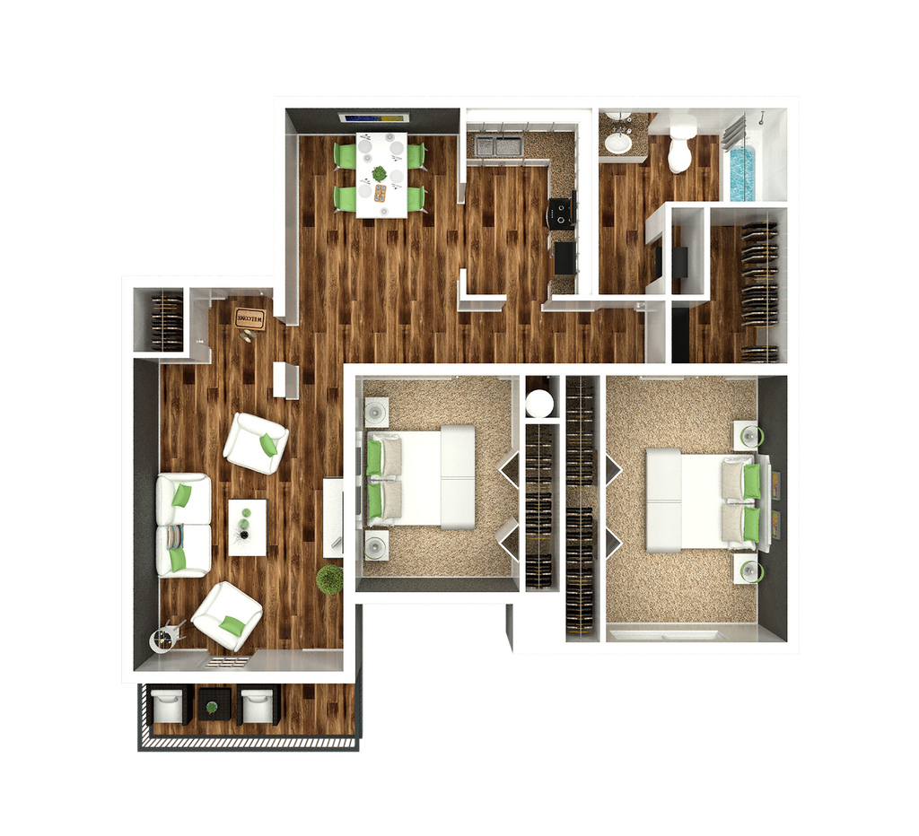Apartment Model: 2 Bedroom 1 Bath2 Bedroom, 1 Bath, 959 sq ftAvailable December 5, 2025![]()