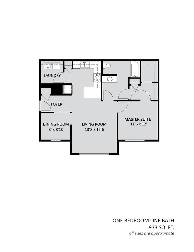 1 Bed, 1 Bath, 933 sq ftModel Gallery