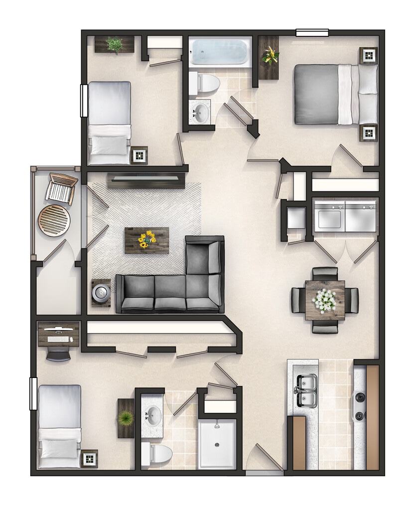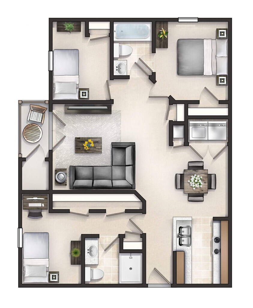 1 Bed, 1 Bath, 840 sq ftAvailable NowLargest 1 BedroomThis is the largest 1 Bedroom at this PropertyModel Gallery