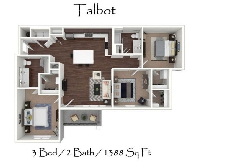 Talbot - Floorplan 1 Apartment Unit: 1Apartment Model: Talbot$2,0253 Bedroom, 2 Bath, 1388 sq ftAvailable Now