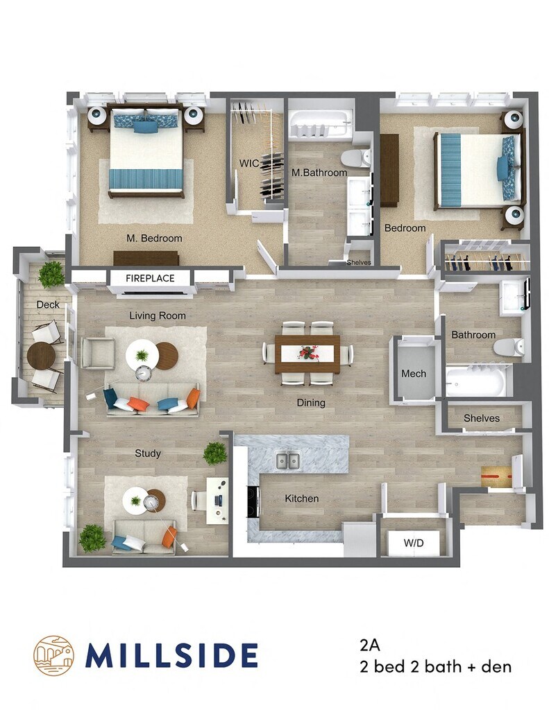 Two Bed - Two Bath with Study - Floorplan 1 Apartment Unit: 100Apartment Model: Two Bed - Two Bath with Study$4,0702 Bedroom, 2 Bath, 1261 sq ftAvailable Now![]()