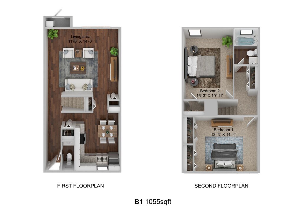 2 Beds, 1.5 Baths, 1055 sq ftAvailable NowModel Gallery