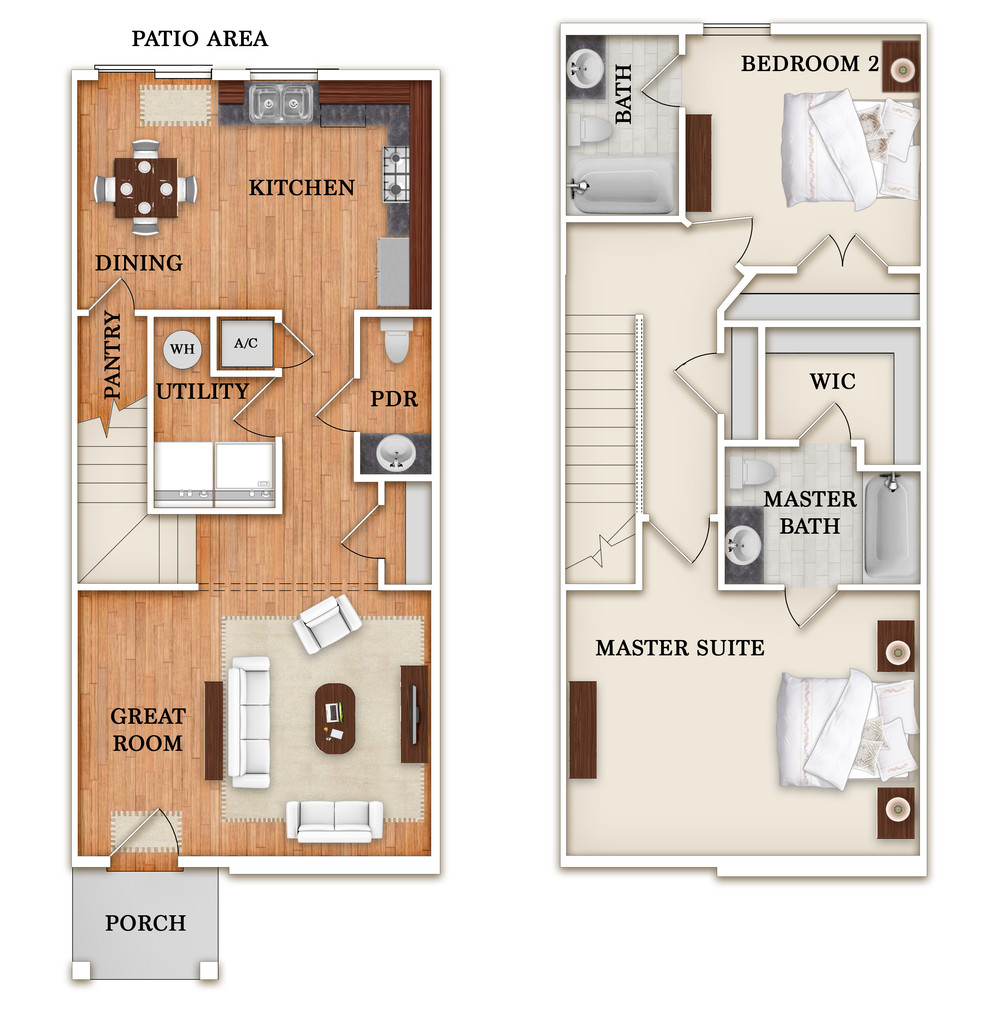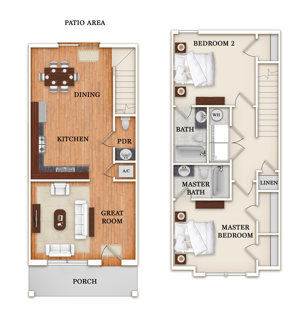 2 Beds, 2.5 Baths, 1334 sq ftAvailable NowLargest 2 BedroomThis is the largest 2 Bedroom at this PropertyModel Gallery