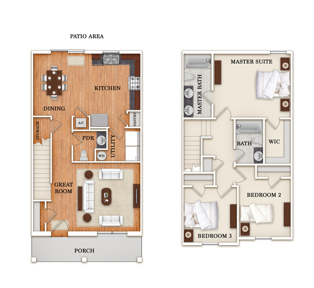 3 Beds, 2.5 Baths, 1292 sq ftModel Gallery
