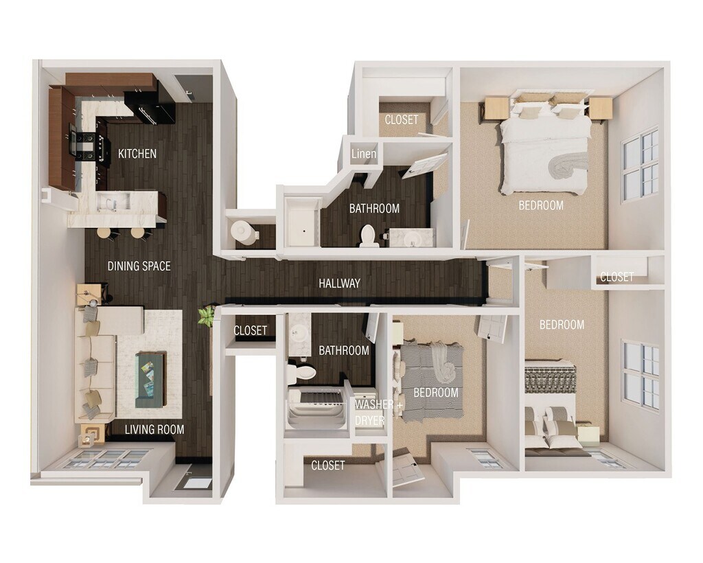 2 Beds, 1.5 Baths, 1065 sq ftAvailable January 29, 2026Model Gallery