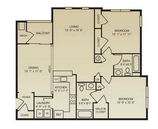 2 Beds, 2 Baths, 1178 sq ftAvailable Dec 10Largest 2 BedroomThis is the largest 2 Bedroom at this PropertyModel Gallery