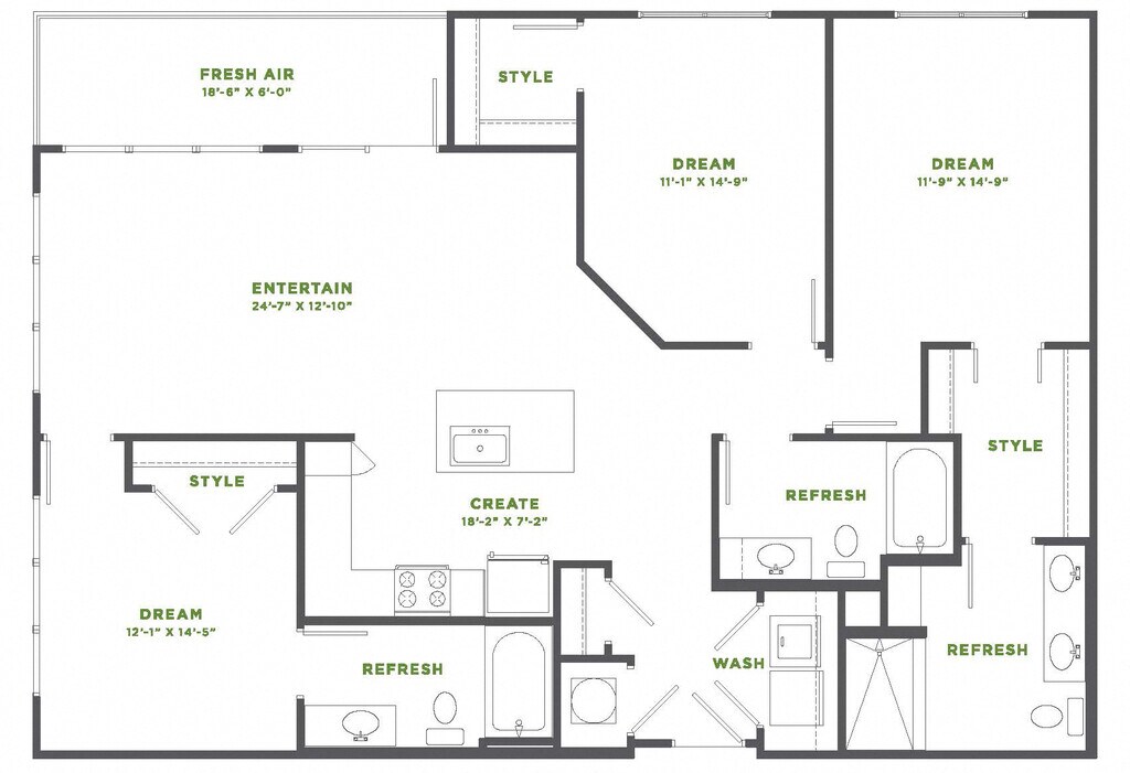 Studio, 1 Bath, 647 sq ftAvailable NowModel Gallery