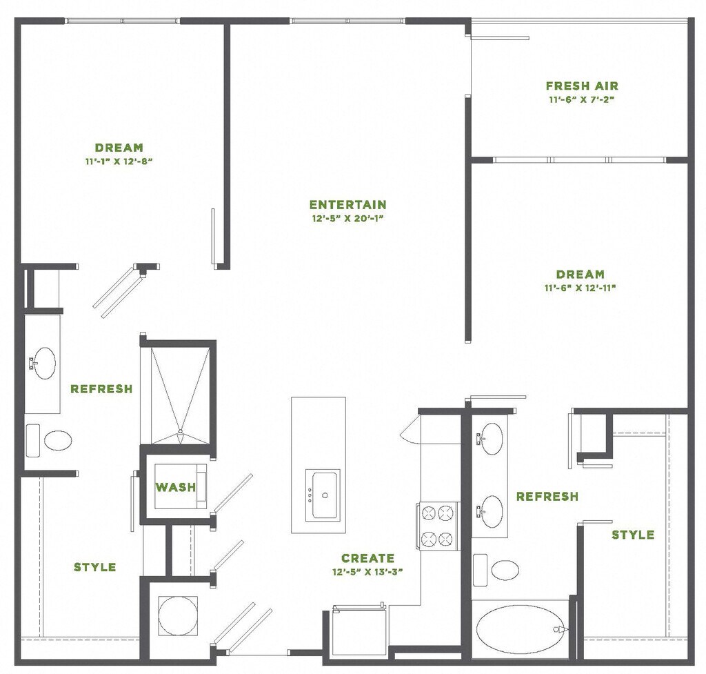 Show Unavailable FloorplansTwo Bedroom Two Bath B2