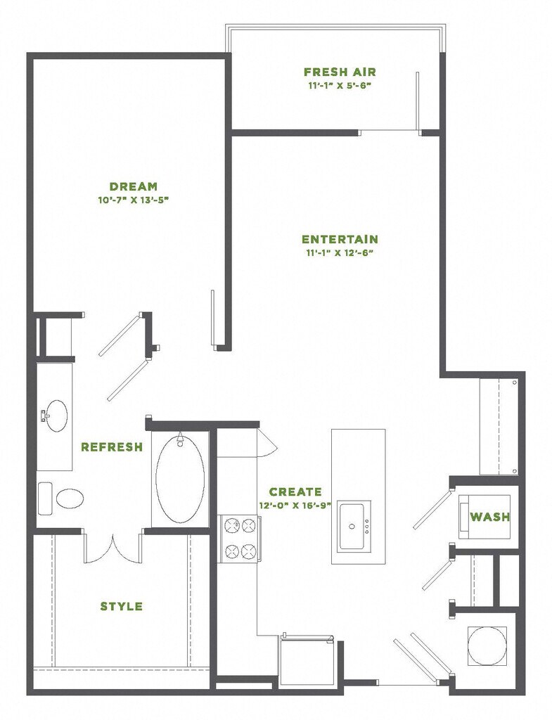 Apartment Model: One Bedroom One Bath A2Call For Rates1 Bedroom, 1 Bath, 672 sq ftAvailable NowFloor plans are artist's rendering. All dimensions are approximate. Actual product and specifications may vary in dimension or detail. Not all features are available in every rental home. Prices and availability are subject to change. Base rent is based on monthly frequency. Additional fees may apply, such as but not limited to package delivery, trash, water, amenities, etc. Deposits vary. Please see a representative for details.