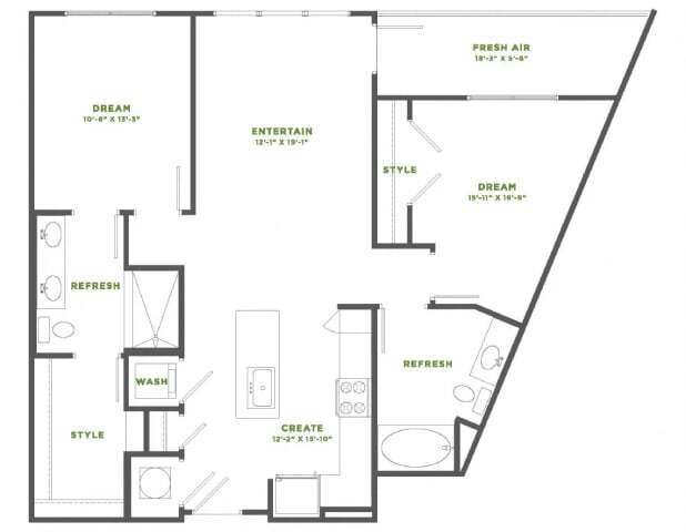 Apartment Model: One Bedroom One Bath A2From $1,2531 Bedroom, 1 Bath, 672 sq ftAvailable NowFloor plans are artist's rendering. All dimensions are approximate. Actual product and specifications may vary in dimension or detail. Not all features are available in every rental home. Prices and availability are subject to change. Base rent is based on monthly frequency. Additional fees may apply, such as but not limited to package delivery, trash, water, amenities, etc. Deposits vary. Please see a representative for details.