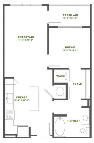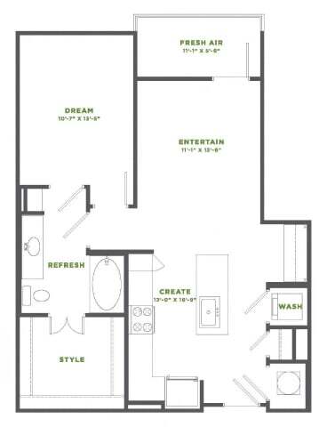 Studio, 1 Bath, 647 sq ftAvailable NowModel Gallery