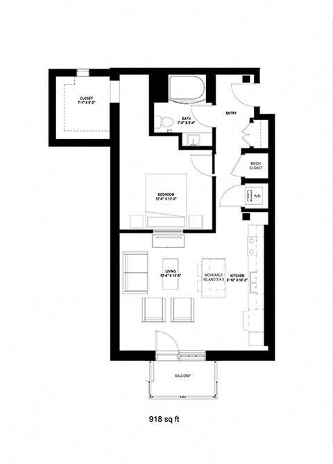 One Bedroom - L - Floorplan 1 Apartment Unit: 329Apartment Model: One Bedroom - L1 Bedroom, 1 Bath, 918 sq ftAvailable NowOne Bedroom - O