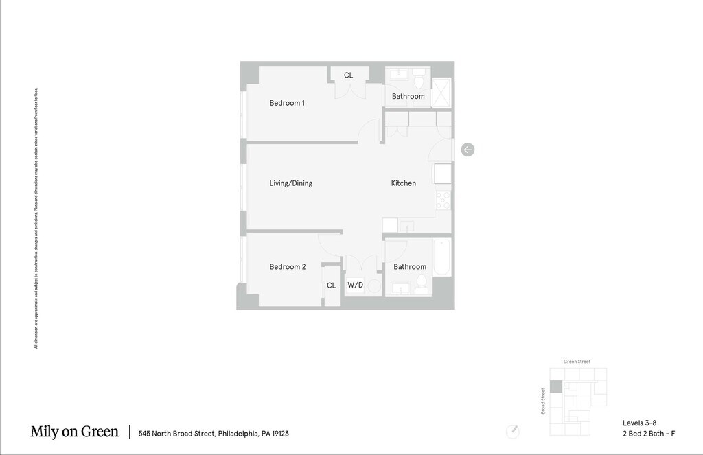 2 Bed 1 Bath - B - Floorplan 1 Apartment Unit: Mily on Green-404Apartment Model: 2 Bed 1 Bath - BFrom $2,2502 Bedroom, 1 Bath, 780 sq ftAvailable Now2 Bed 2 Bath - C