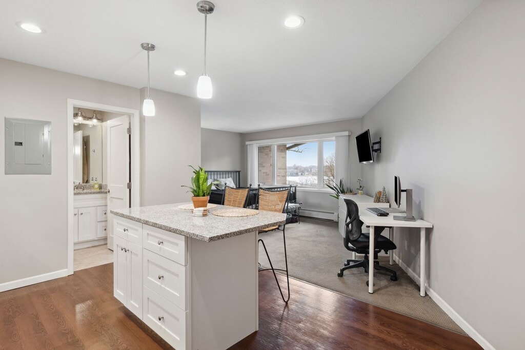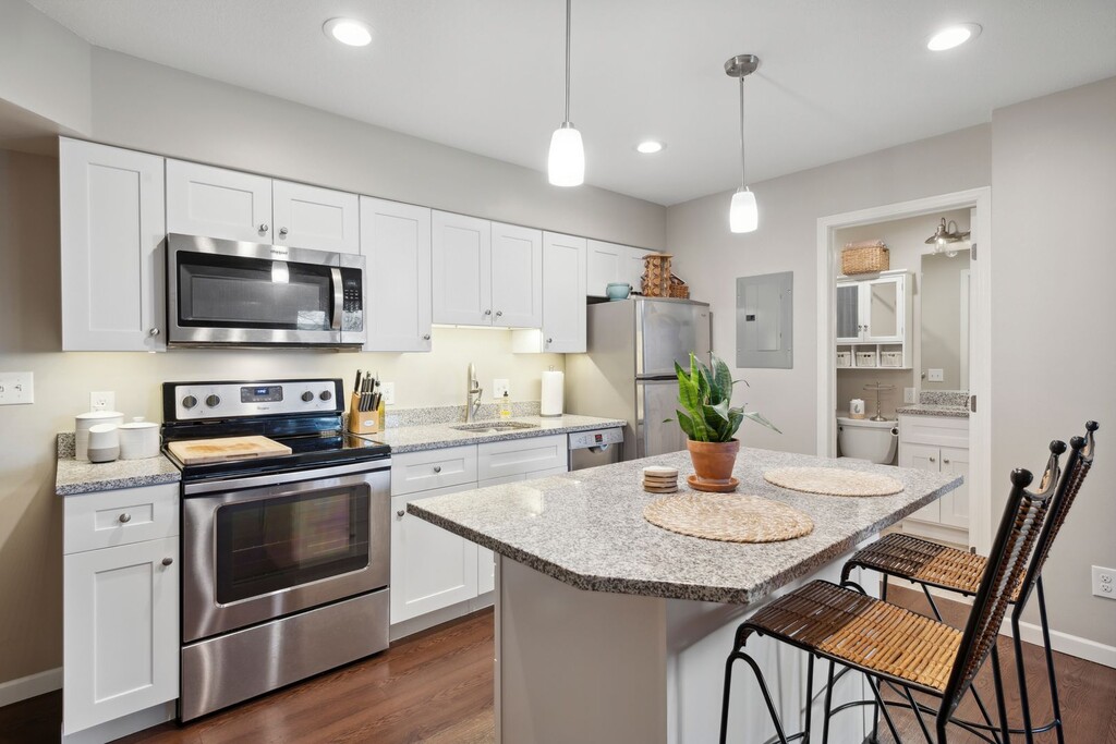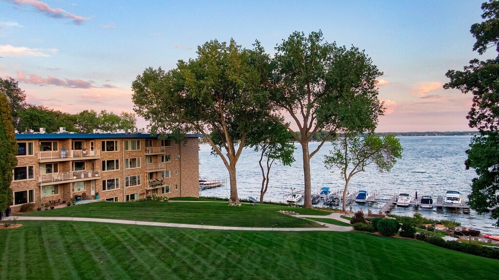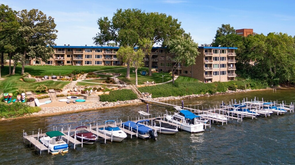 The Minnetonka Edgewater certainly boasts a storied past as the first luxury apartment building on Lake Minnetonka, and its array of modern amenities and attention to detail make it a standout choice for lakeside living. The private balconies overlooking Lake Minnetonka provide residents with breathtaking views year-round, complemented by the thoughtful addition of wall-to-wall Marvin windows to maximize the scenery. The nautical theme running throughout the property adds to its charm and creates a cohesive ambiance for residents to enjoy. The modern features in the renovated units, such as in-unit washers and dryers and wine refrigerators, coupled with high-speed internet, ensure both comfort and connectivity for residents. The state-of-the-art workout facility and commitment to safety further enhance the living experience, providing convenience and peace of mind. Of course, the lakeshore amenities truly set the Minnetonka Edgewater apart. From the outdoor fireplace and fire pit to the boat slips and sand beach, residents have ample opportunities to enjoy the beauty of Lake Minnetonka. The availability of kayaks, paddle boards, and canoes adds an extra layer of recreational possibilities for water enthusiasts. Overall, the Minnetonka Edgewater offers a luxurious and comfortable lifestyle in the heart of the Twin Cities, making it a premier choice for those seeking lakeside living. A tour of this unique property is sure to be an unforgettable experience!