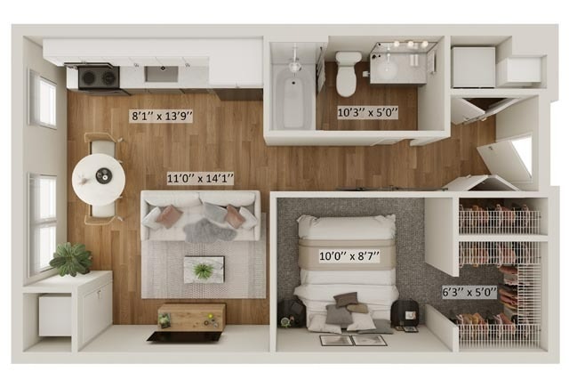 Studio, 1 Bath, 589 sq ftPlus FeesAvailable Oct 30Model Gallery