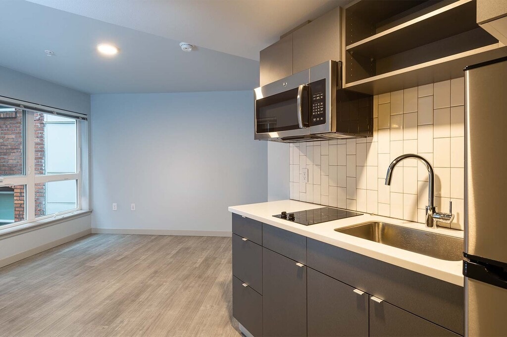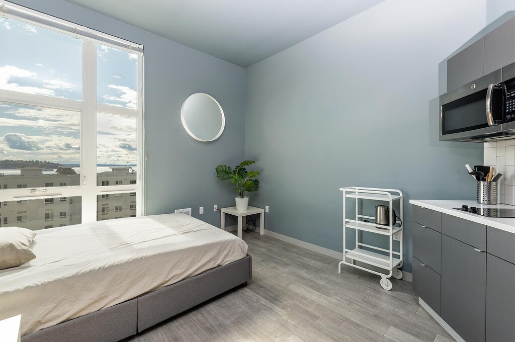 Live in the mix at Minnie Flats, perfectly positioned in the heart of Seattle. With the city's best food, entertainment and activities all within minutes of your flat, you can immerse yourself in the culture of one of the finest cities in the world. Take in the stunning panoramic views from our community rooftop deck, featuring beautiful views of Elliott Bay, the Space Needle and the Seattle skyline. Our flats feature modern design touches from floor-to-ceiling windows, custom cabinetry, stainless steel appliances and stylish lighting. The uniquely triangular Minnie Flats complex offers a variety of floor plans with creative layout possibilities.