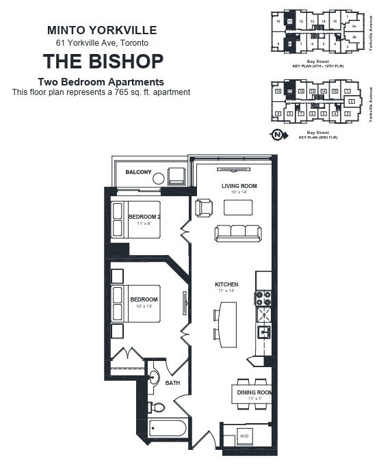 Minto Yorkville offers 1 to 3 Bedroom apartments starting from C$3,005 and having 615–1,070 sq ft. Here is the current pricing and availability: