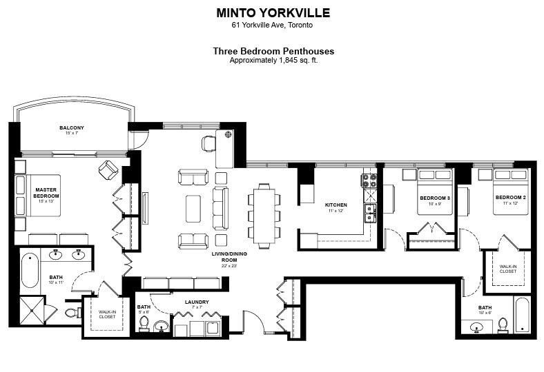 1 Bedroom to 3 Bedroom Apartments at Minto Yorkville currently range from C$3,005 to C$11,995
