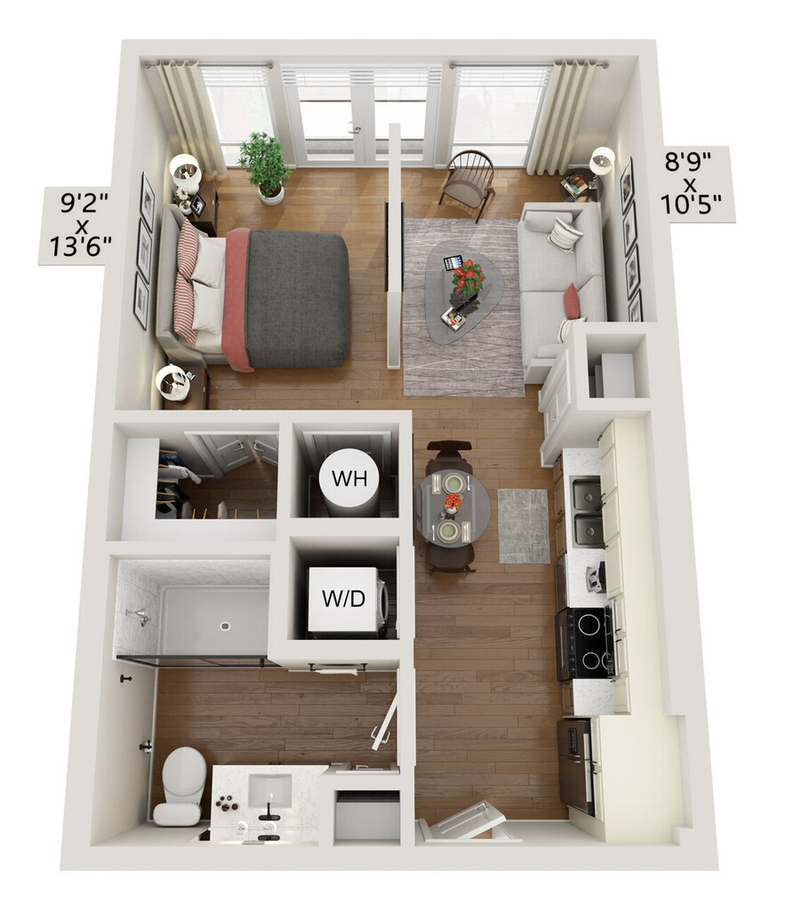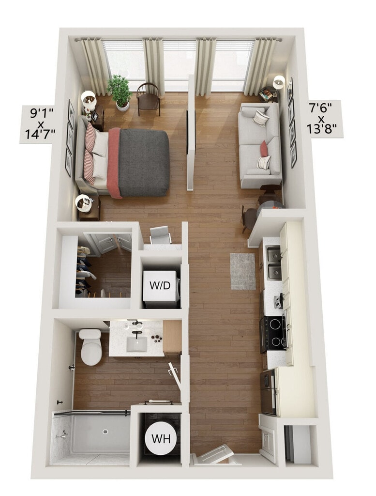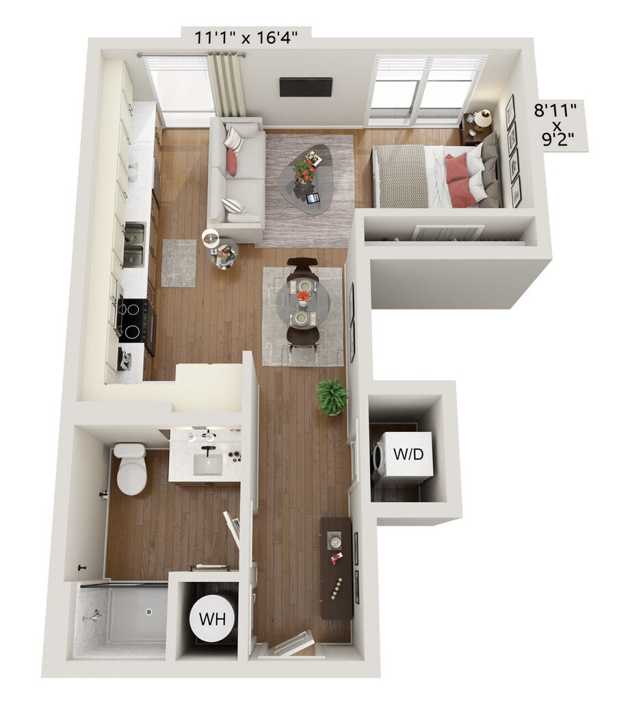 Apartment Model: S1From $1,267Studio, 1 Bath, 542-543 sq ftAvailable NowFloor plans are artist's rendering. All dimensions are approximate. Actual product and specifications may vary in dimension or detail. Not all features are available in every rental home. Prices and availability are subject to change. Base rent is based on monthly frequency. Additional fees may apply, such as but not limited to package delivery, trash, water, amenities, etc. Deposits vary. Please see a representative for details.