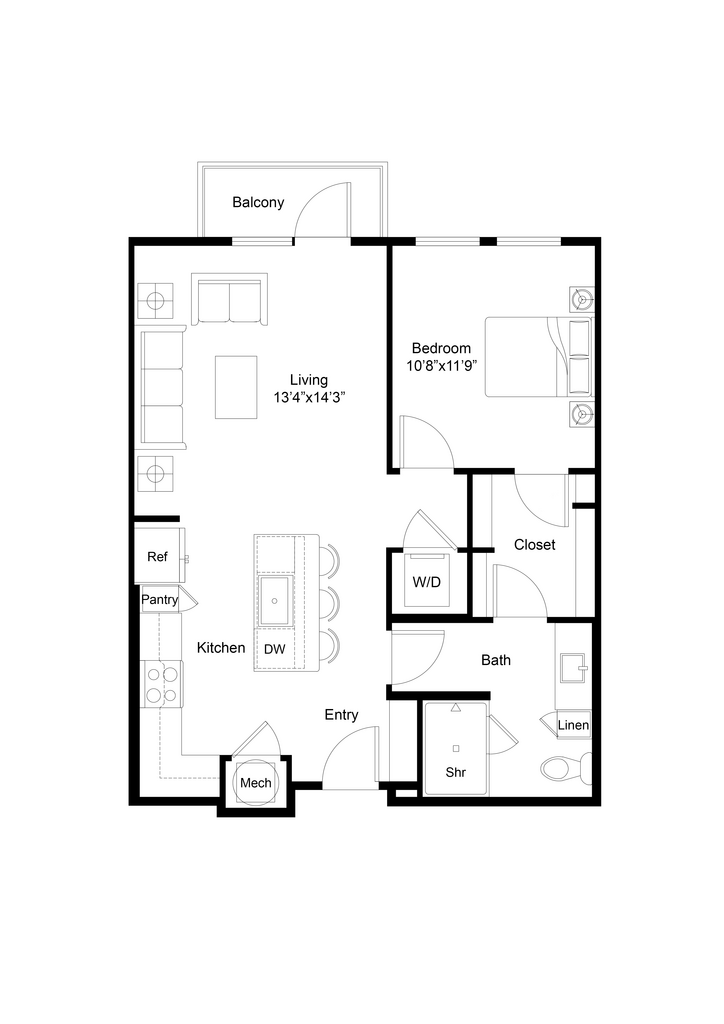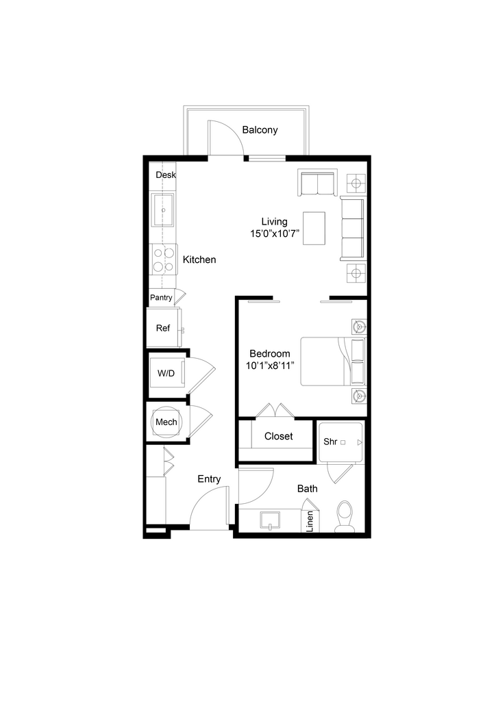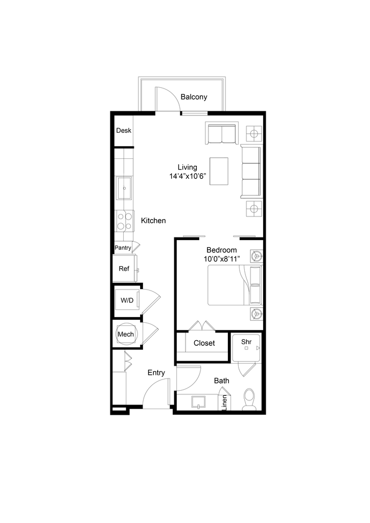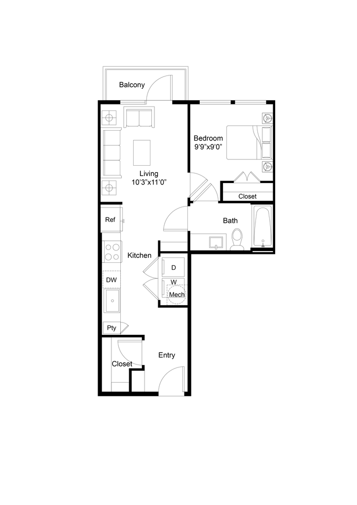 Studio, 1 Bath, 630 sq ftAvailable NowLargest StudioThis is the largest Studio at this PropertyModel Gallery