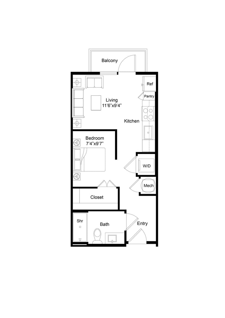 0 Bed / 1 Bath - Floorplan 2 Apartment Unit: 1102Apartment Model: 0 Bed / 1 BathStudio, 1 Bath, 537 sq ftAvailable Now0 Bed / 1 Bath
