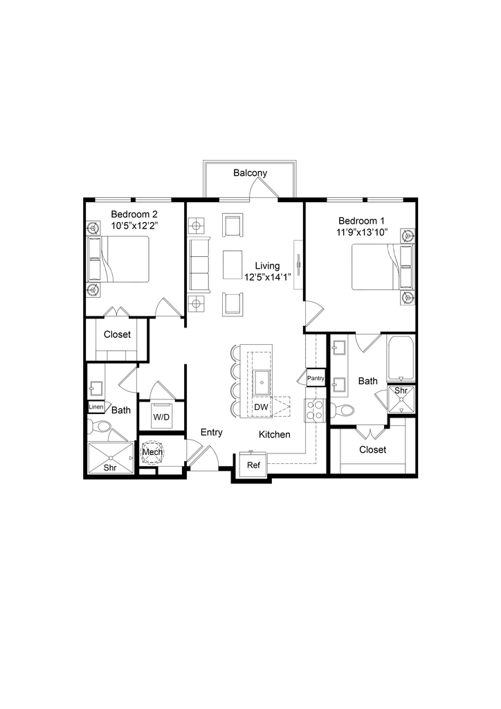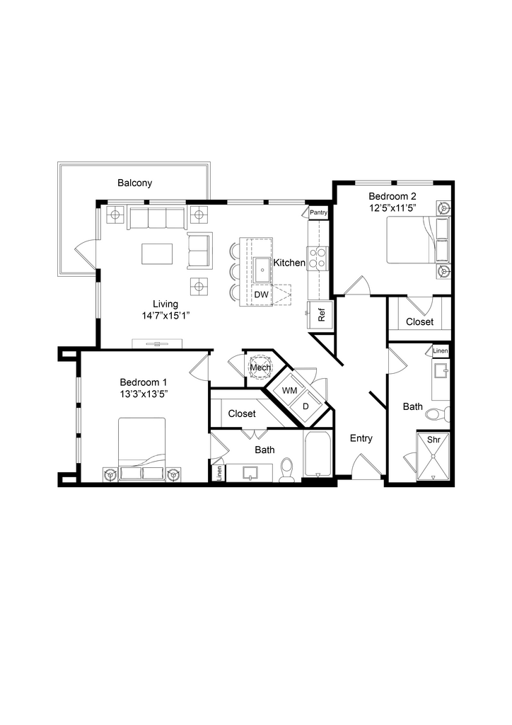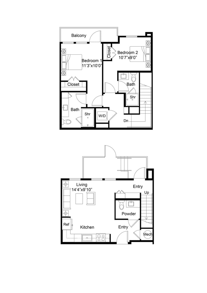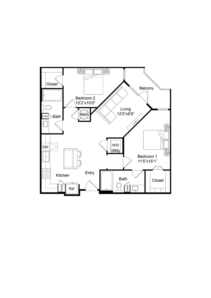 2 Bed / 1.5 Bath - Floorplan 2 Apartment Unit: 1092Apartment Model: 2 Bed / 1.5 Bath2 Bedroom, 1.5 Bath, 1322 sq ftAvailable Now2 Bed / 2.5 Bath