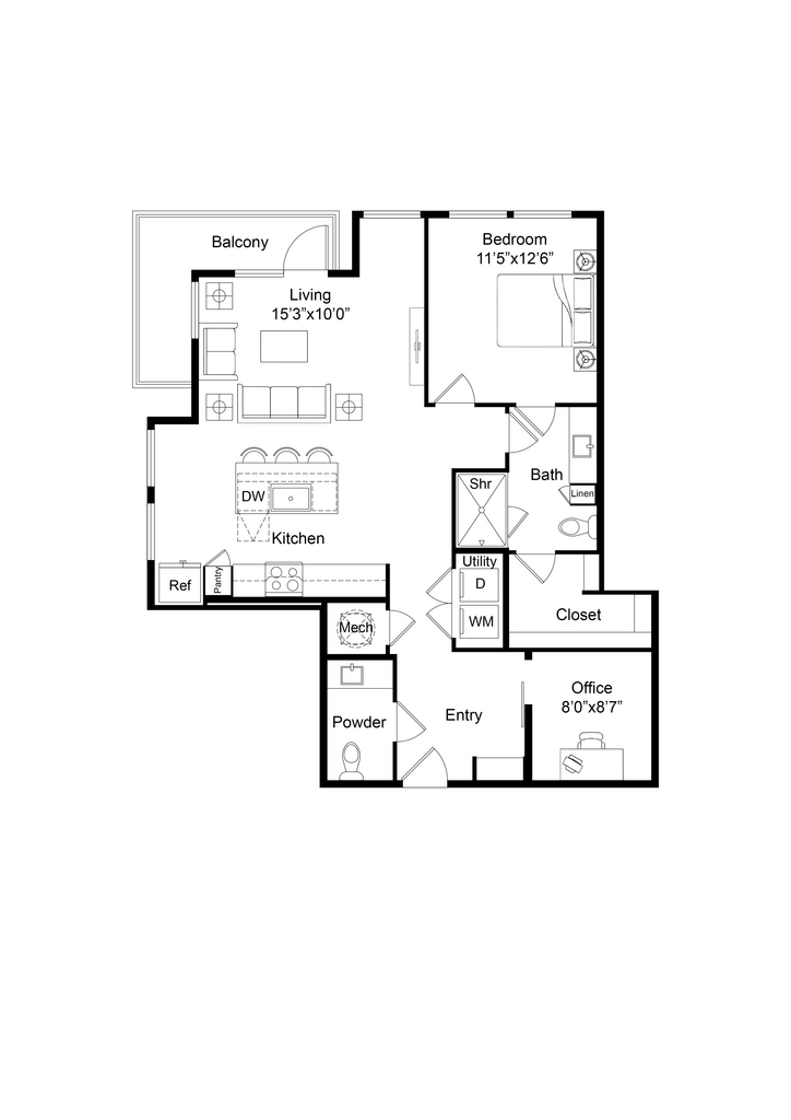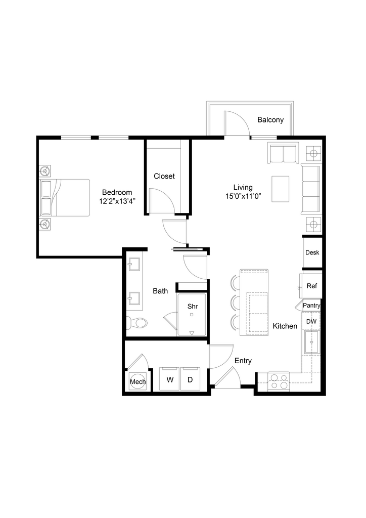 1 Bed, 1 Bath, 752 sq ftAvailable NowModel Gallery