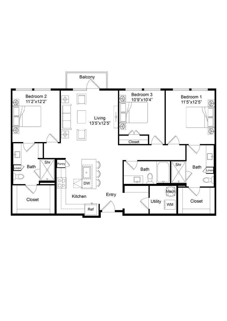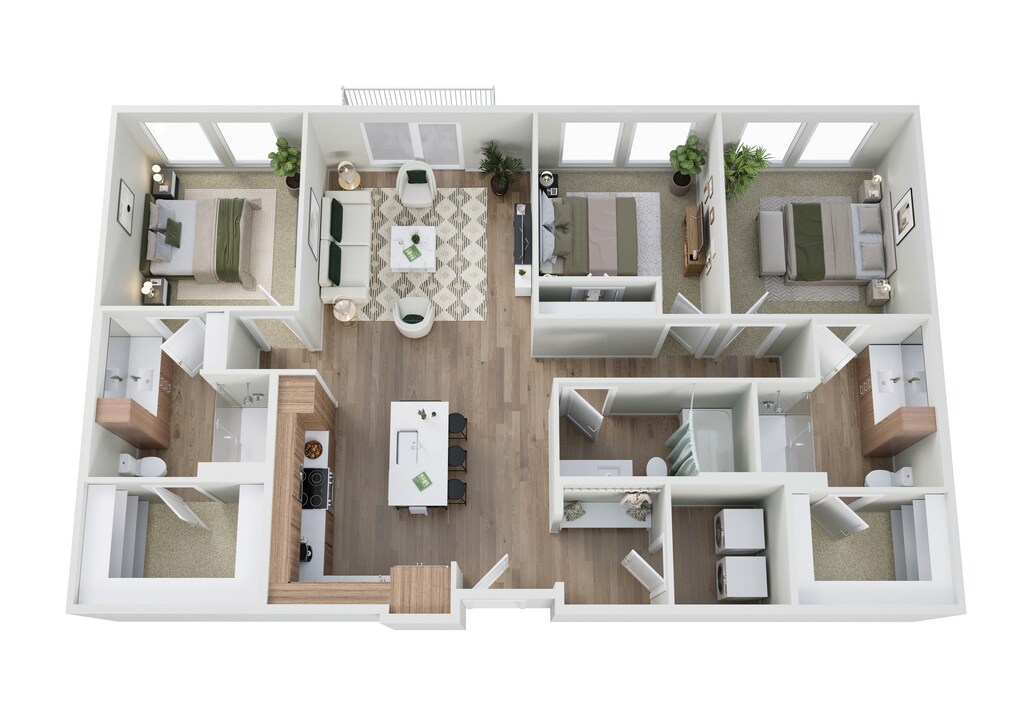 Apartment Model: 3 Bed / 3 Bath3 Bedroom, 3 Bath, 1505 sq ftAvailable March 1, 2026FloorplansPhotos![]()