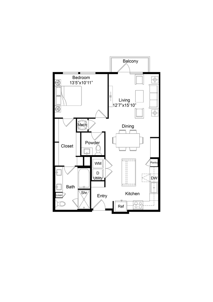 1 Bed, 1.5 Baths, 1105 sq ftAvailable NowLargest 1 BedroomThis is the largest 1 Bedroom at this PropertyModel Gallery