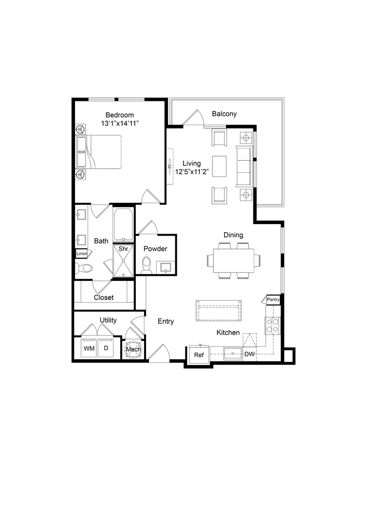 1 Bed, 1 Bath, 730 sq ftAvailable NowModel Gallery