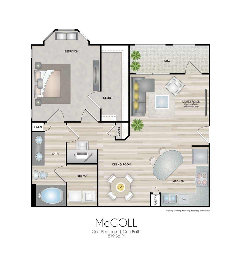 Apartment Model: McCollFrom $1,1301 Bedroom, 1 Bath, 819-861 sq ftUnavailableFloorplansPhotos![]()