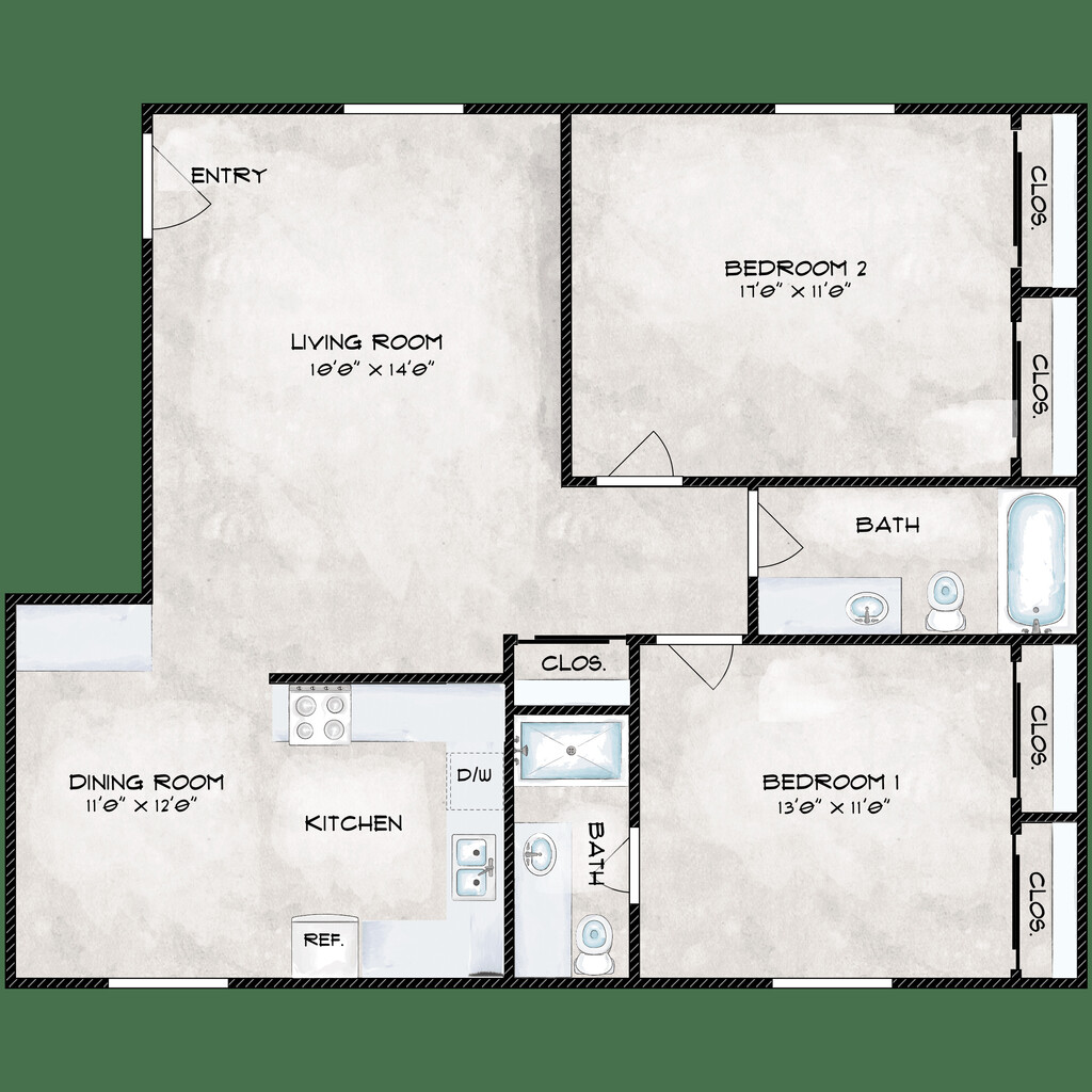 Apartment Model: B22 Bedroom, 2 Bath, 1050 sq ftUnavailable![]()