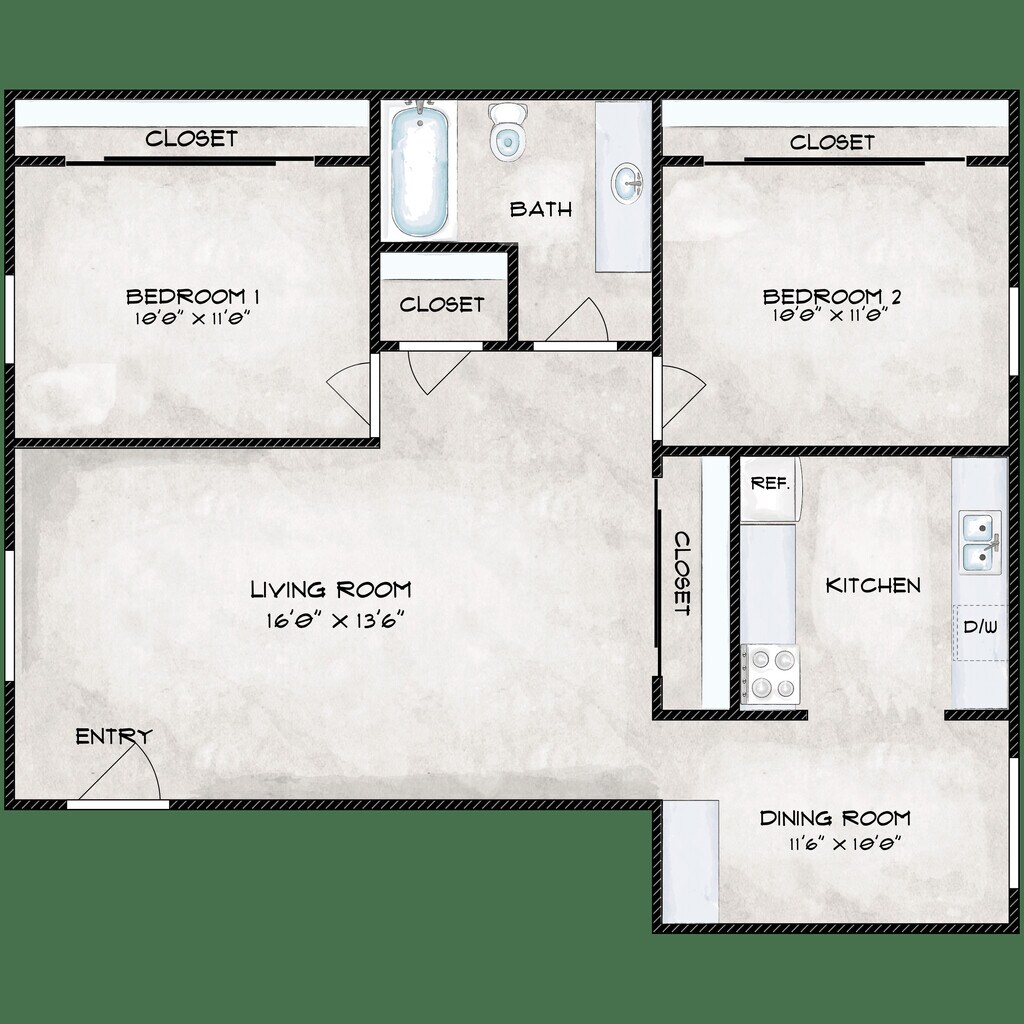 2 Beds, 1 Bath, 950 sq ftModel Gallery