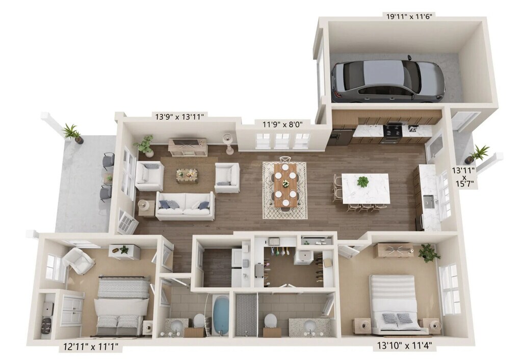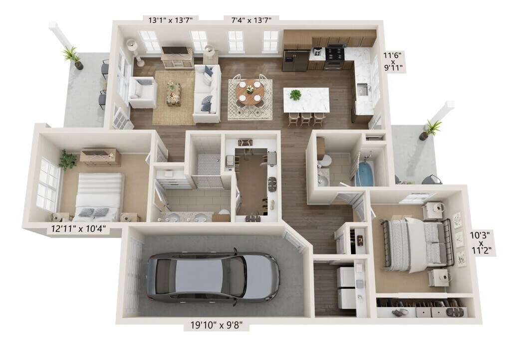 Apartment Model: CedarFrom $2,1702 Bedroom, 2 Bath, 1112 sq ftAvailable NowFloor plans are artist's rendering. All dimensions are approximate. Actual product and specifications may vary in dimension or detail. Not all features are available in every rental home. Prices and availability are subject to change. Base rent is based on monthly frequency. Additional fees may apply, such as but not limited to package delivery, trash, water, amenities, etc. Deposits vary. Please see a representative for details.