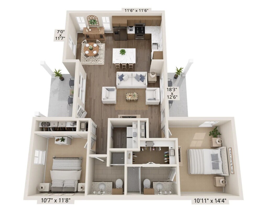 2 Beds, 2 Baths, 1112 sq ftAvailable NowModel Gallery